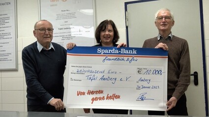10.000 Euro für die Tafel Amberg: Der Gewinnsparverein der Sparda-Bank Ostbayern unterstützte insgesamt 19 Einrichtungen in der Region, die sich um Bedürftige kümmern – unter anderem eben die Tafel Amberg. Denn die Zahl der Menschen, die sich in einer prekären Lage befinden, habe sich in den vergangenen Monaten zum Teil vervielfacht, hieß es bei der Spendenübergabe in Amberg. Die Tafel Amberg hat rund 1.150 Kunden, denen hier schnell, unbürokratisch und bedarfsgerecht geholfen wird.