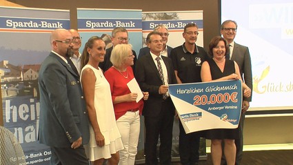 20 Jahre Sparda-Bank Filiale in Amberg. Das wurde jetzt im Stadtmuseum Amberg gefeiert. Mehr als 5.000 Mitglieder zählen zur Sparda-Bank in Amberg. Im Rahmen der Jubiläumsfeier überreichte Vorstandsvorsitzender Georg Thurner insgesamt 20.000 Euro an vier Vereine aus Amberg und Umgebung. Das Geld stammt aus Mitteln des Gewinnsparvereins der Sparda-Bank Ostbayern. Als Genossenschaftsbank sei es ihnen wichtig, der Region und ihren Bürgern zu danken.