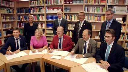 Die OTH Amberg-Weiden bietet künftig zusammen mit dem Staatlichen Beruflichen Schulzentrum Amberg das duale Studium Mechatronik an. Der entsprechende Kooperationsvertrag wurde jetzt unterzeichnet. Ab dem Wintersemester 2018/2019 bietet die OTH den Studiengang ´Mechatronik und digitale Automation´ an. Die Studenten können dann zeitgleich eine betriebliche Ausbildung zum Mechatroniker absolvieren.