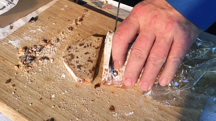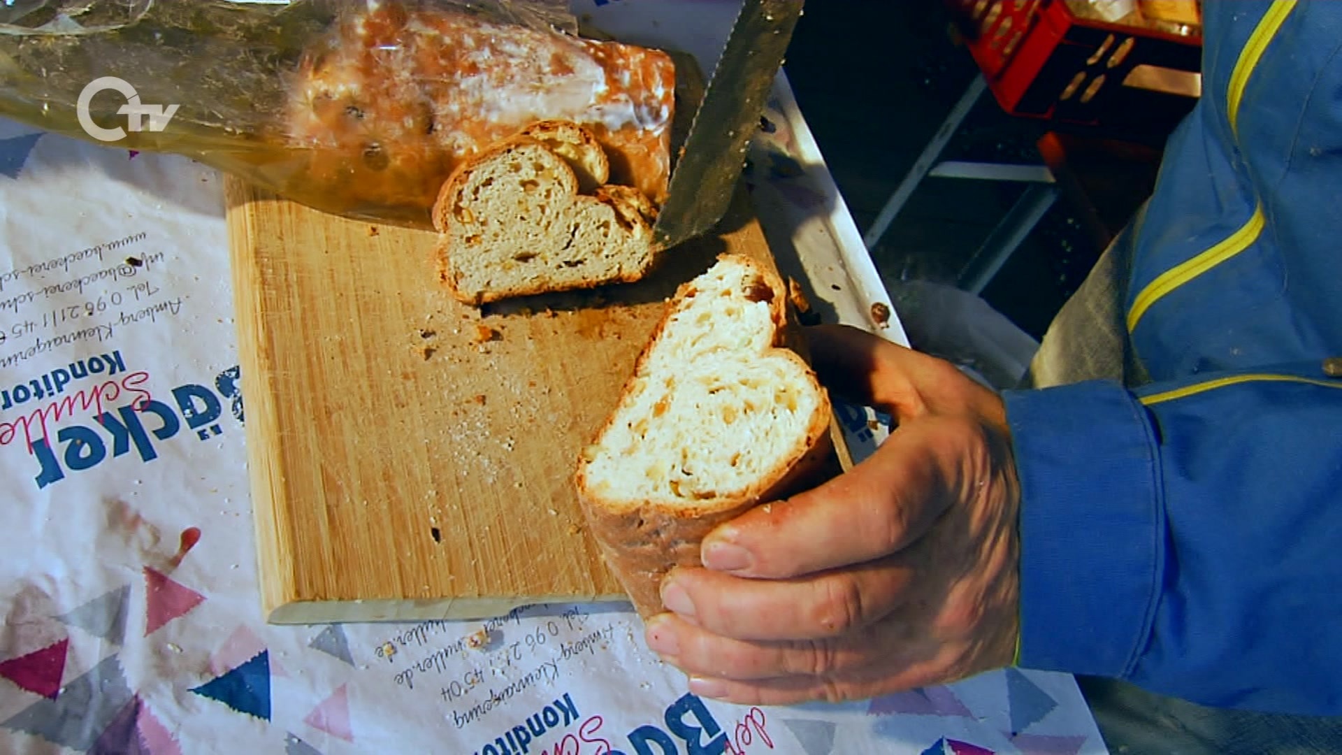Einen Stollen der etwas anderen Art gibt’s von der Wutschdorfer Bäckerei Ries in Freudenberg. „Unser Stollen heißt M. Cheri. Aussprechen darf ich den Namen nicht, der ist geschützt. Aber Sie wissen sicher, was ich meine“, lacht Marco Ries von der Wutschdorfer Bäckerei Ries. „Das ist ein leichter Hefeteig. Zutaten sind außerdem Kirschwasser, Kirschen und Schokotropfen“.