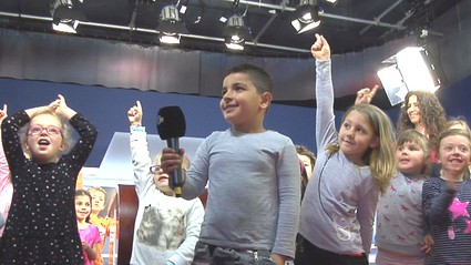 Nachdem fleißig vom Teleprompter abgelesen und die Frage, warum man vor einem green screen besser keine grüne Kleidung trägt, geklärt wurde, ziehen die Kinder ihr Fazit. Alle sind sich einig, dass es Spaß gemacht habe und sie gerne wieder kämen. (ap)