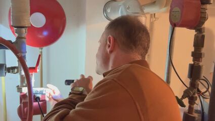 Heute schaut sich Ludwig Kinzler das Haus in Amberg an. Er prüft zum Beispiel die Fenster. Dass hier im Fenster nur zwei Flammen zu sehen sind, zeigt ihm: Die Dämmung ist schlecht. Die Heizungsanlage wird natürlich auch genau inspiziert, ebenso der Verbrauch.