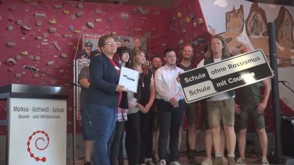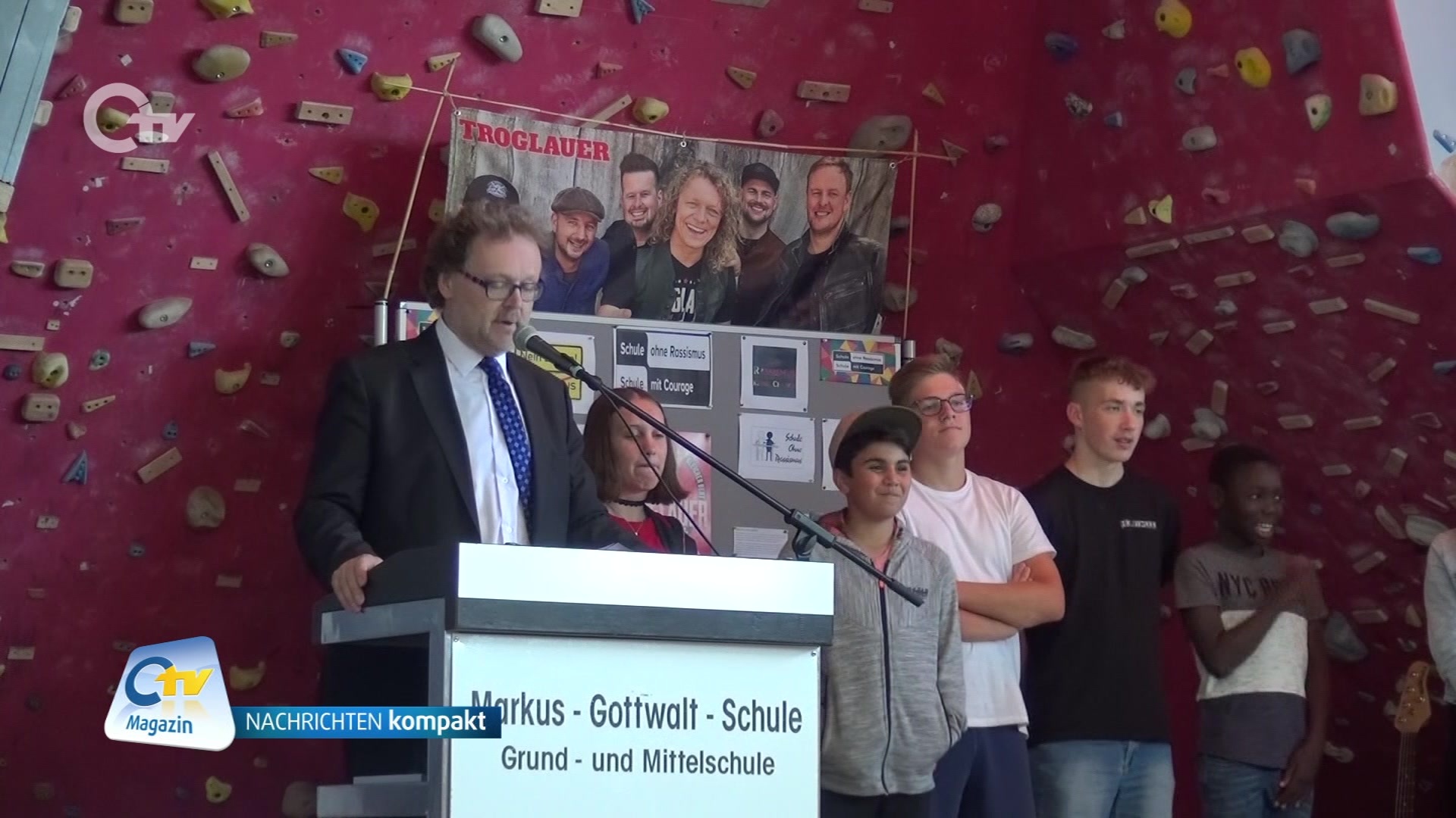 Schule ohne Rassismus – Schule mit Courage. Zu diesem deutschlandweiten Netzwerk zählt nun auch die Markus-Gottwalt-Schule in Eschenbach. Schulleiter Wolfgang Bodensteiner freute sich über das offizielle Siegel, das bald über dem Schuleingang angebracht werden soll. Auch die „Troglauer Buam“, Paten der Schule, haben mitgefeiert und in der Turnhalle aufgespielt.