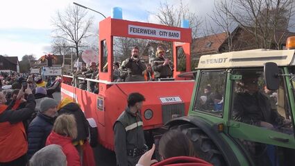Wildes Faschingstreiben in Münchenreuth. Auch in diesem Jahr wurde das kleine Städtchen von tausenden Zuschauern besucht. Unter dem Motto „Jedes Thema sticht“ gab es für die Feiernden 35 Fußgruppen und 12 Wägen zu sehen. Die Närrinnen und Narren nahmen nicht nur Nachbar-Ortschaften auf die Schippe. Auch den Fachkräftemangel und den Pfarreibesuch eines Wunderheilers thematisierten sie. Der traditionelle Faschingskehraus beendete das bunte Treiben.