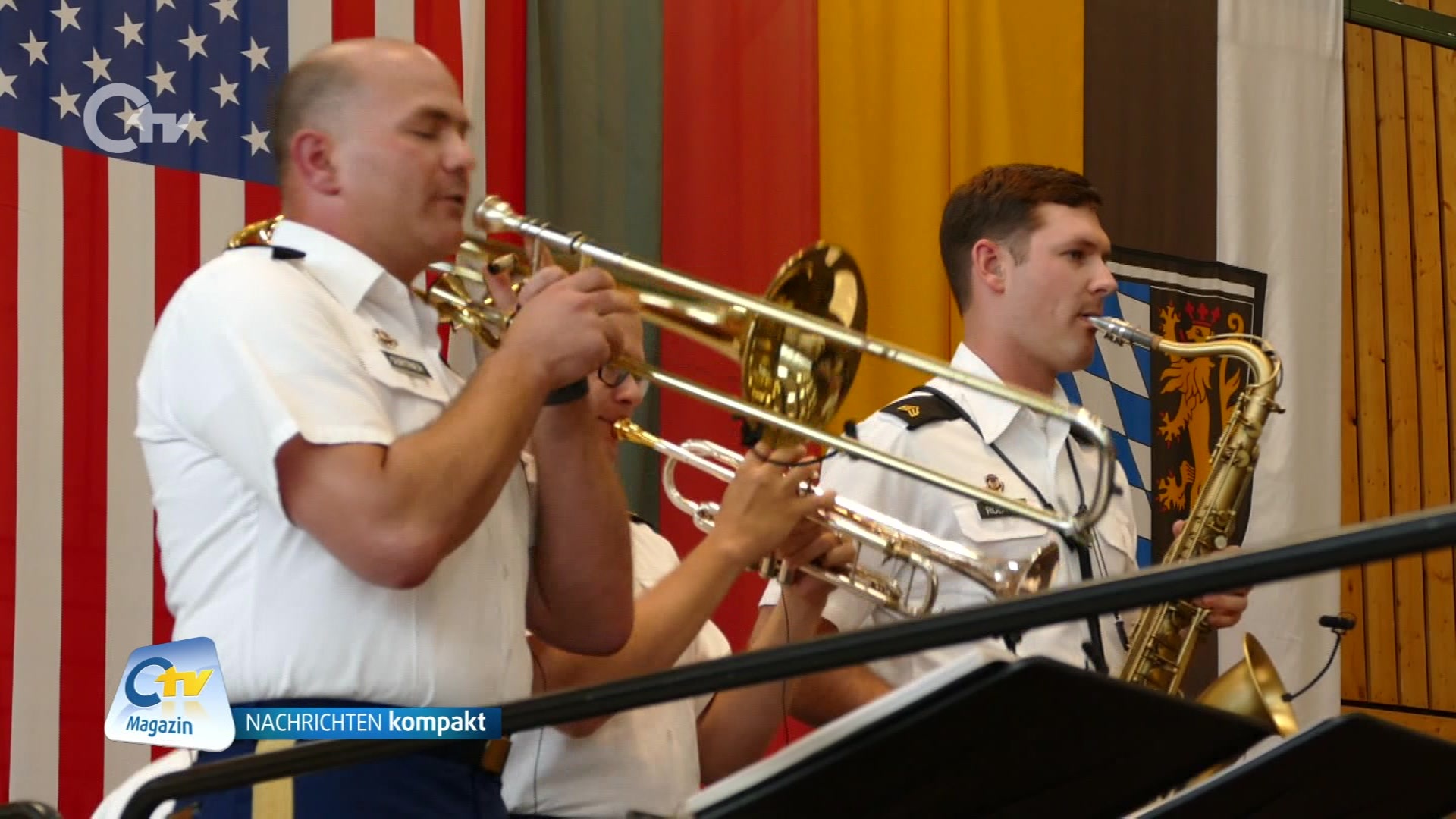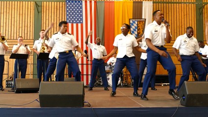 Die US Army Europe Band hat im Rahmen ihrer Europatournee „Concert on the lawn“ Halt in Grafenwöhr gemacht. Wegen des ungünstigen Wetters wurde der Auftritt von der Naturbühne am Schönberg in die Stadthalle verlegt. Bei freiem Eintritt hat die Band dort ihre gesamte musikalische Bandbreite präsentiert und die Zuschauer mitgerissen.