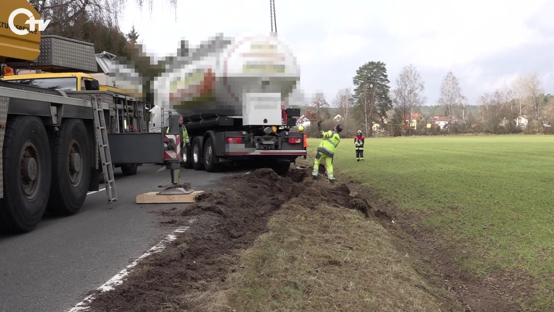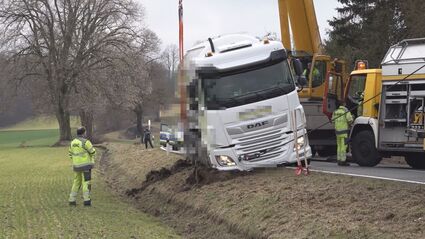Lkw-Unfall auf der Staatsstraße zwischen Auerbach in der Oberpfalz und Neuhaus an der Pegnitz. Heute Vormittag ist dort ein mit Pellets beladener Lastwagen auf Höhe Ranna von der Fahrbahn abgekommen. Laut dem Lkw-Fahrer soll ein entgegenkommender weißer Lkw mit Kühl-Auflieger und einem ausländischen Kennzeichen seinen Lkw von der Straße gedrängt haben. Dieser Lkw soll dann weiter gefahren sein. Der Fahrer des verunfallten Lkw blieb unverletzt. Aufgrund der Bergung war die Straße mehrere Stunden gesperrt.