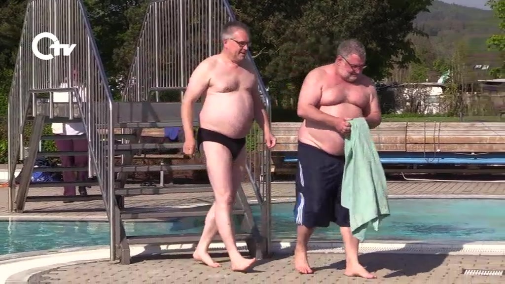 Ab ins kühle Nass. Mit einem Sprung – oder vielmehr einem Gang – ins Schwimmbecken im Freibad Perschen haben die Bürgermeister von Nabburg und Pfreimd, Armin Schärtl und Richard Tischler, die Freibadsaison eröffnet. Zusammen mit Gästen und der Pächterin der Gaststätte im Freibad Perschen stießen sie auf die neue Saison im Freizeit und Erholungszentrum an. Diese sollte ursprünglich schon am 1. Mai starten, wurde aber wetterbedingt verschoben.