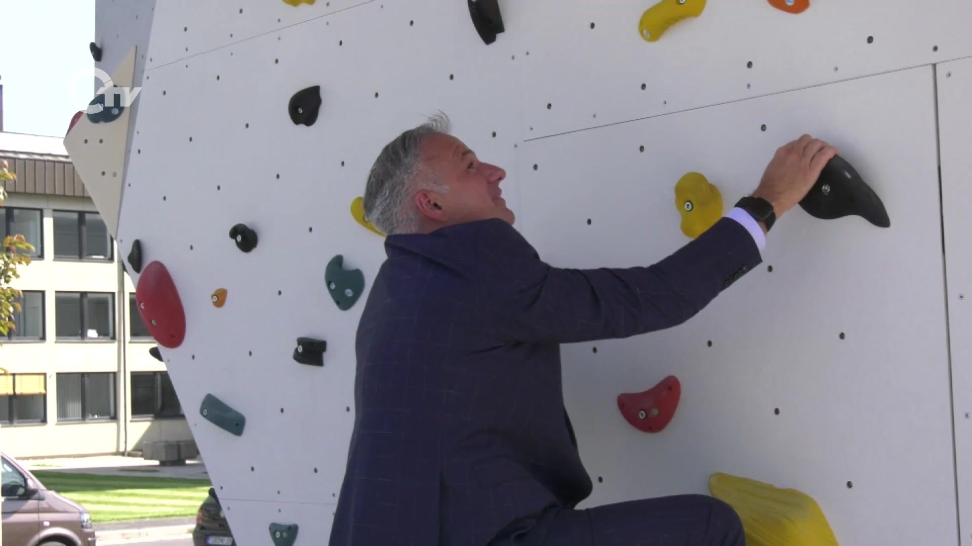 Eröffnung des neuen Außenbereichs am Beruflichen Schulzentrum in Wiesau: Entstanden ist unter anderem ein Boulderbereich. Landrat Roland Grillmeier ist überzeugt, dass der neue Außenbereich den Berufsschulstandort aufwertet. Damit macht das modernisierte Schulzentrum seinen Schülern nun auch ein modernes Angebot, um mal weg von Bildschirm und Smartphone zu kommen, wie es bei der Eröffnung heißt. Für die Neugestaltung hat der Landkreis rund eine Million Euro investiert.