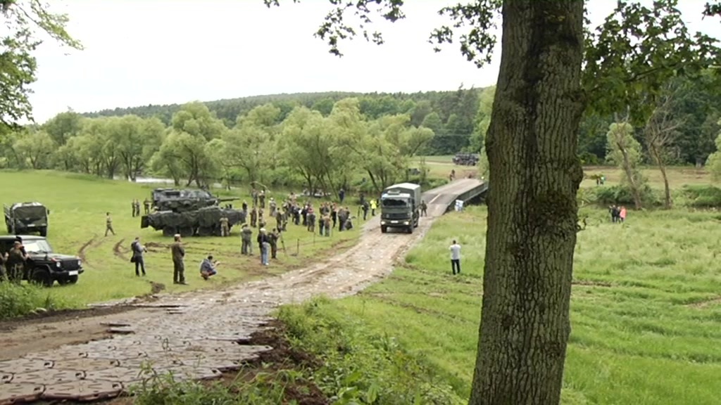 700 Militärfahrzeuge und 1500 Soldaten des 2. Kavallerieregiments der US-Army und von Partnernationen der NATO werden im Rahmen der Operation „Saber Strike 16“ (Säbelschlag) vom Trupenübungsplatz Vilseck nach Tapa in Estland verlegt. Dragoon Ride II, nennt sich diese Verlege-Übung, die vor allem als Machtdemonstration der NATO gegenüber Russland gilt und durch sechs Länder führt. Schon kurz nach dem Start des zweiten Konvois heute Morgen nutzt die NATO Dragoon Ride zu einer spektakulären Militärübung. Bei Luhe im Landkreis Neustadt an der Waldnaab errichten Soldaten des Panzerpionierbataillons 4 aus Bogen eine Behelfsbrücke über die Naab. Mit den Übungen will die NATO demonstrieren, dass Gerätschaft und Soldaten in Regimentsstärke über 2000 Kilometer weit innerhalb kürzester Zeit verlegt werden können. (gb)