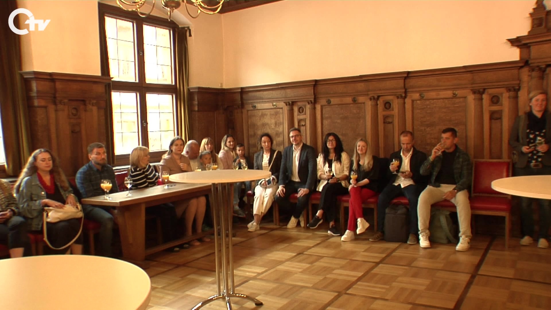 Empfang ukrainischer Hochschulvertreter im Amberger Rathaus. Oberbürgermeister Michael Cerny begrüßte die rund 40 Vertreter aus der Ukraine. Dieses Treffen bildet den Abschluss der Interadis-Projektwoche an der OTH Amberg-Weiden. Dort haben sie in Workshops und Präsentationen die Oberpfälzer Kultur kennen gelernt. Das Treffen war bereits für den März 2022 geplant, musste aber aufgrund des Ukraine-Kriegs verschoben werden. Ziel des Besuchs war der Austausch über das Thema Internationalisierung sowie der Krieg in der Ukraine.