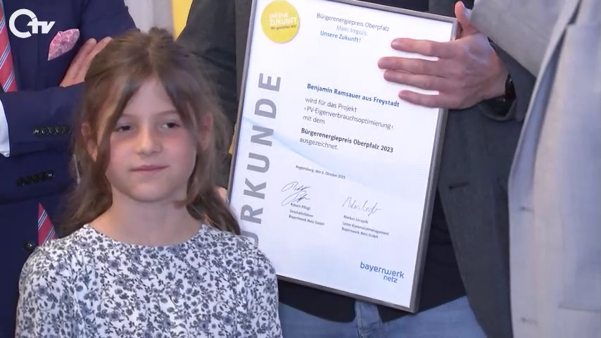 Der dritte im Bunde der Preisträger 2023 ist Benjamin Ramsauer aus Freystadt. Er hat eine Software entwickelt, die ihm dabei hilft, die Energie aus seiner Photovoltaikanlage optimal zu nutzen. Dank der Software weiß er wann wie viel Strom zur Verfügung steht und kann die produzierte Energie dadurch sehr viel effizienter nutzen.