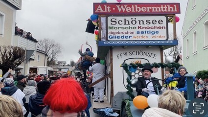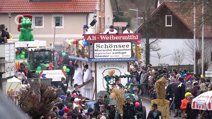 Es ist ein Spektakel, das es nur alle zehn Jahre in Schönsee gibt – und einzigartig in der Oberpfalz ist. Organisiert wird die Altweibermühle federführend von der Schönseer Feuerwehr. Unterstützung bekommen sie natürlich von vielen anderen Vereinen und freiwilligen Helfern. Insgesamt war es ein Faschinsgzug mit 15 Wägen und vier Fußgruppen.