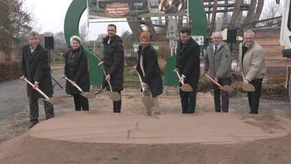 Die Freude war bei den Squattwins Julia und Stephanie am Ende ihres Weltrekordversuchs im Dauerrutschen an der Erlebnisholzkugel am Steinberger See groß. Sie hatten es geschafft!