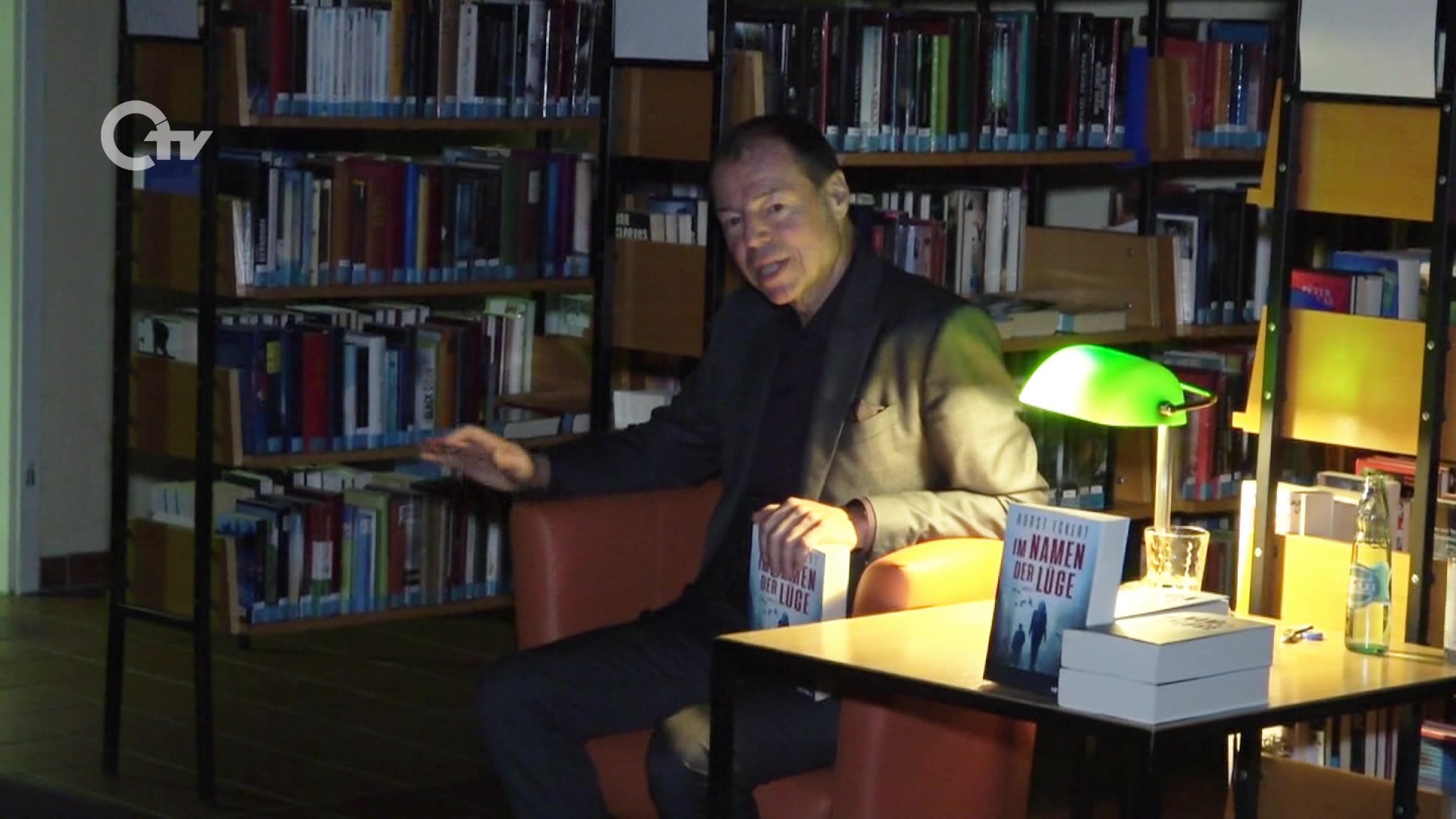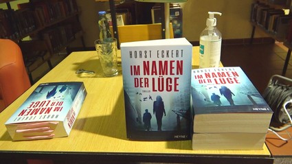 Lesung mit Autor Horst Eckert in der Stadtbücherei Tirschenreuth. Dort hat der gebürtige Weidener Autor und ehemalige TV-Journalist sein neues Buch „Im Namen der Lüge“ vorgestellt.