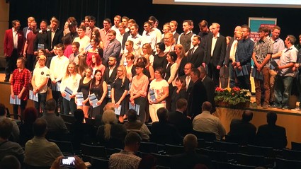 Sie haben alle ihre Gesellenprüfung zum Maler- und Lackierer, Elektroniker, Mechatroniker, Schreiner, Bäcker, Friseur oder zum Fachverkäufer im Lebensmittelhandwerk im Sommer erfolgreich bestanden. 106 Frauen und Männer aus dem Gebiet der Kreishandwerkerschaft Nordoberpfalz haben daher jetzt feierlich ihre Gesellenbriefe erhalten. Bei der Abschlussfeier in der Max-Reger-Halle in Weiden beglückwünschte sie die Vizepräsidentin der Handwerkskammer Niederbayern-Oberpfalz Kathrin Zellner und wünschte ihnen viel Erfolg auf ihrem weiteren Lebensweg.