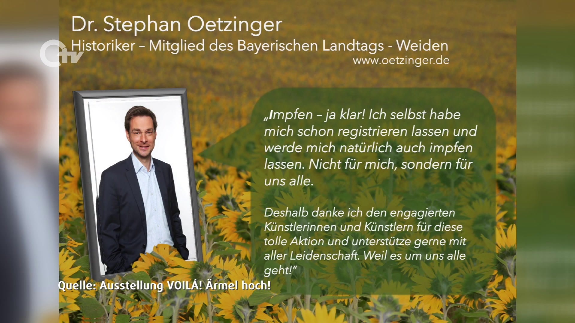 Auch der CSU-Landtagsabgeordnete Dr. Stephan Oetzinger unterstützt das Projekt. Er lud nicht nur Ministerpräsident Söder, sondern auch Finanzminister Albert Füracker und Wissenschaftsminister Bernd Sibler ein, Grußworte mit entsprechenden Impfaufrufen zu sprechen.