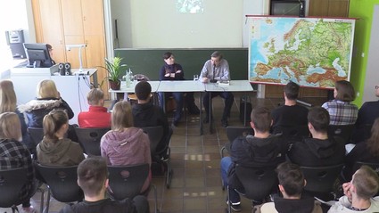 Zeitzeugengespräch in der Staatlichen Wirtschaftsschule Weiden. Josef Salomonovic wurde im Alter von drei Jahren in das Ghetto Litzmannstadt deportiert. Später kamen er und seine Familie über das KZ Ausschwitz in das KZ Stutthof. Dort wurde sein kranker Vater ermordet. Diese und weitere Einzelheiten seiner grausamen Gefangenschaft erzählte Salomonovic jetzt zwei Abschlussklassen der Wirtschaftsschule. Das Zeitzeugengespräch wurde im Rahmen des Projekts Schule ohne Rassismus – Schule mit Courage organisiert. Neben dem Gespräch gibt es in der Schulaula auch eine Ausstellung über die KZ-Gedenkstätte Flossenbürg zu sehen.