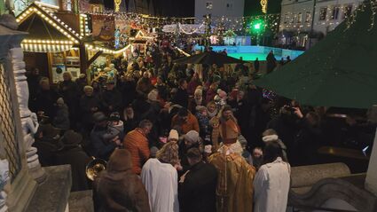 Eröffnung des Weidener Christkindlmarktes. Oberbürgermeister Jens Meyer und seine Helfer, der heilige Nikolaus und sein Krampus, haben den Weidener Christkindlmarkt eingeläutet. Zusammen haben sie die Kinderaugen zum Leuchten gebracht und Geschenke verteilt. Die Jagdhornbläser der BJV-Gruppe Weiden-Neustadt haben den ersten Tag des Christkindlmarktes feierlich umrahmt. Der Christkindlmarkt läuft noch bis Montag, den 23. Dezember.