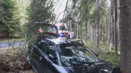 Zwei leicht Verletzte nach einem Verkehrsunfall auf der sogenannten „Bergrennstrecke“ zwischen Friedenfels und Poppenreuth. Ein junger Audifahrer ist, wohl aufgrund zu hoher Geschwindigkeit, im Kurvenbereich auf die Gegenfahrbahn geraten und streifte den Ford einer Familie. Der Audi prallte gegen einen Baum. Der Audifahrer und die Fahrerin des Fords wurden leicht verletzt. An den Fahrzeugen entstand ein Sachschaden in Höhe von insgesamt ca. 15.000 Euro. Am Unfallort waren auch zwei Hubschrauber des BRK im Einsatz, da zunächst von mehreren Verletzten ausgegangen wurde.